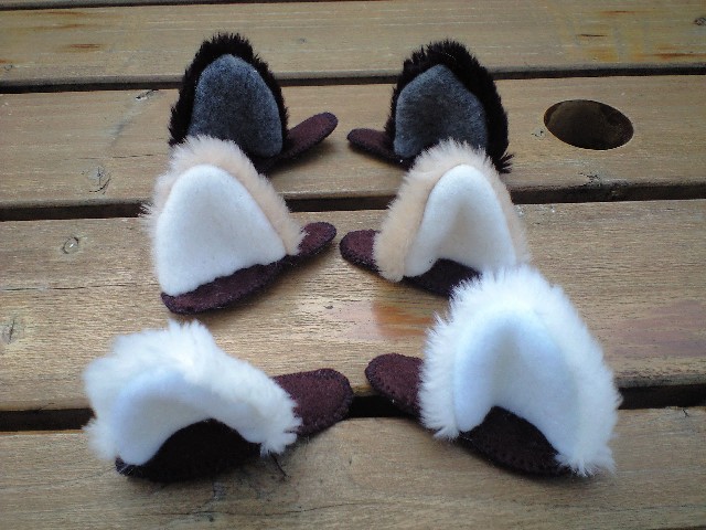 灰色たれ耳(大)とピンと立った黒耳(小)の2種類です。